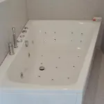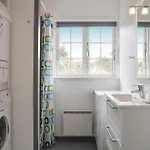 Die Badezimmer in der Villa in Ringkøbing sind mit einem Whirlpool, einer Dusche und einer Waschmaschine ausgestattet. Auch gibt es einen Wäschetrockner für den Komfort der Gäste.